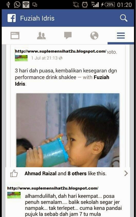 saya sebagai seorang ibu menyusukan anak dapat merasa perbezaannya setelah mengamalkan performance Drink ketika berbuka dan bersahur di bulan ramadhan, kebaikkan ini lah yang saya ingin kongsikan, malahan Performance Drink ini adalah minuman sekeluarga. Minuman ini boleh dibancuh bersama air kosong atau boleh di campur dengan perisa lain. saya selalu minum dengan oren sunquick dan rebina.